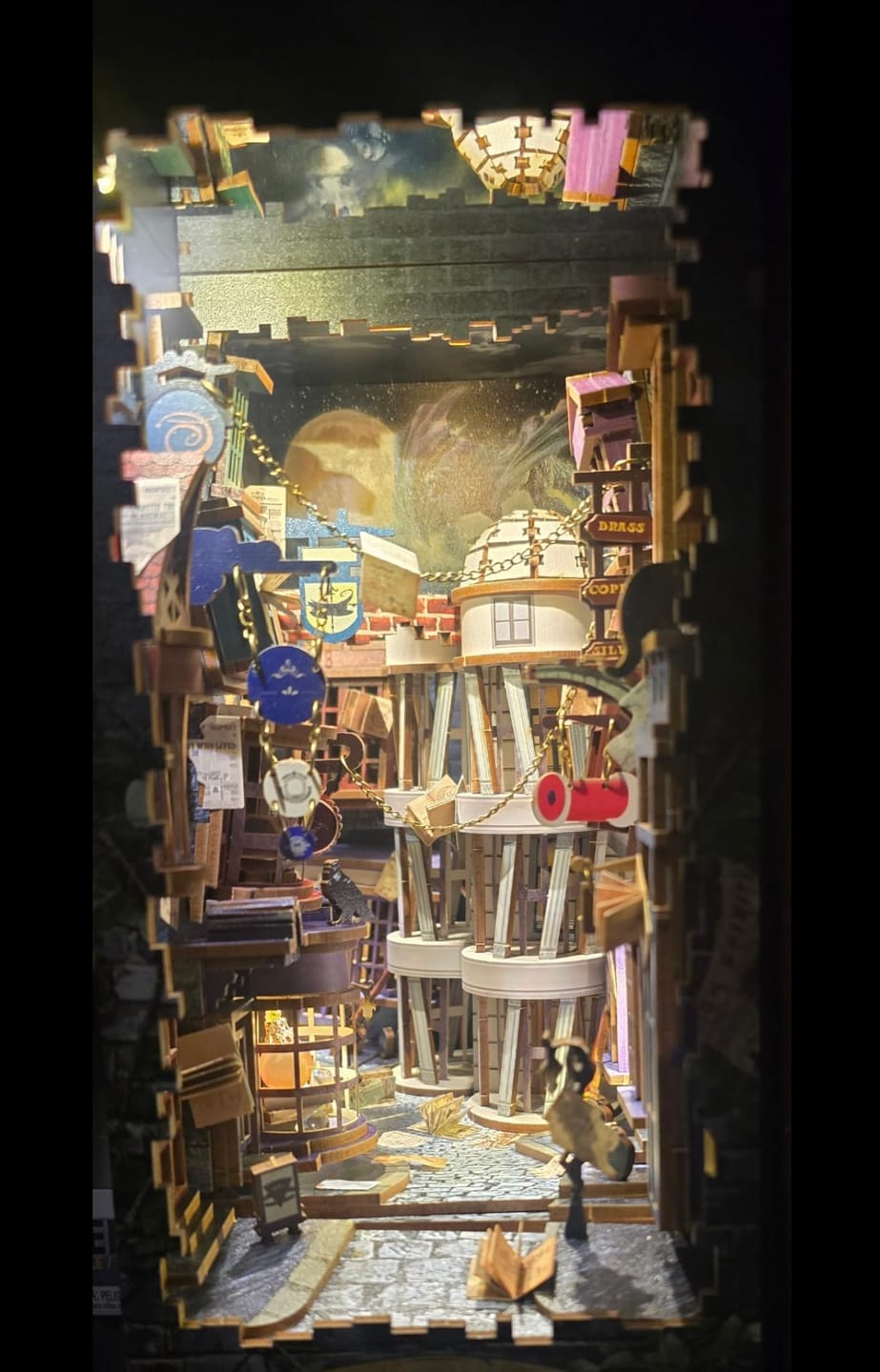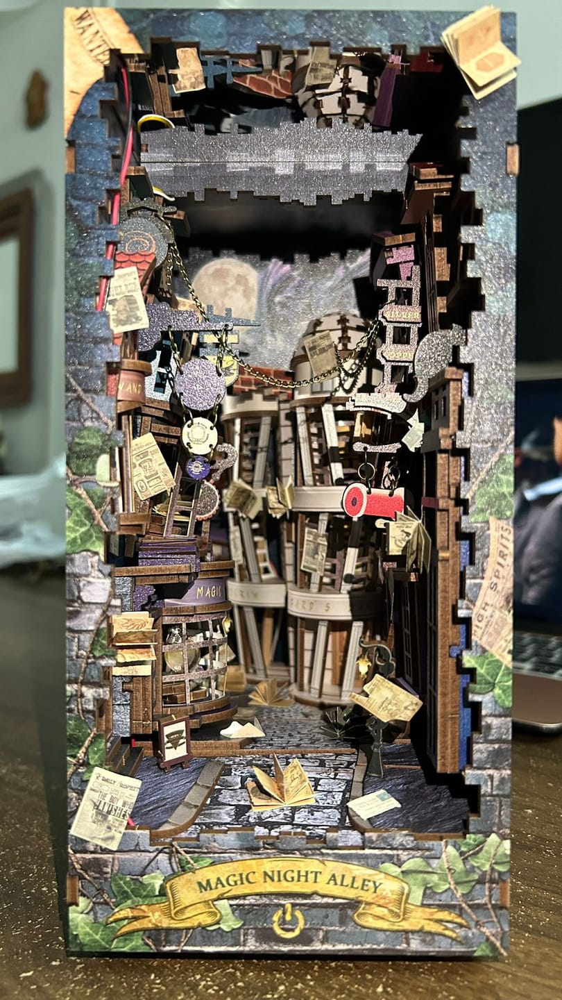 Ausgestattet mit berührungsempfindlichen Lichtern erleuchtet es deine Miniaturwelt und schafft ein faszinierendes, immersives Erlebnis. Entfalte deine Kreativität und verleihe deiner Sammlung mit diesem einzigartigen Book Nook einen Hauch von Zauber.